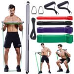 ECO-FRIENDLY 100% NATURAL LATEX — Resistance bands that come with fitness bar are made of premium grade layered natural latex and come in resistances ranging from 15 to 85 pounds, strong and durable. Resistance Bands are heavy duty and super versatile so both men and women can use them. ADJUSTABLE RESISTANCE – Select 1 or 2 bands at a time and combine resistance to get the best weight for every exercise.